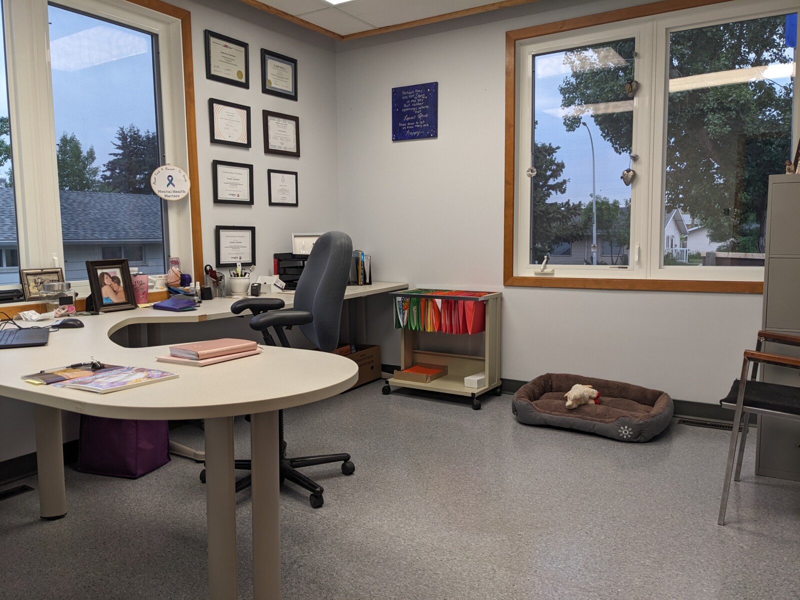 One day, I ran into the Executive Director at a meeting in Fairview after our town had suffered a few suicides. And I got to thinking maybe we could extend the office from Grande Prairie into the North region. So I made an appointment, and I met with the executive director and he loved the idea.